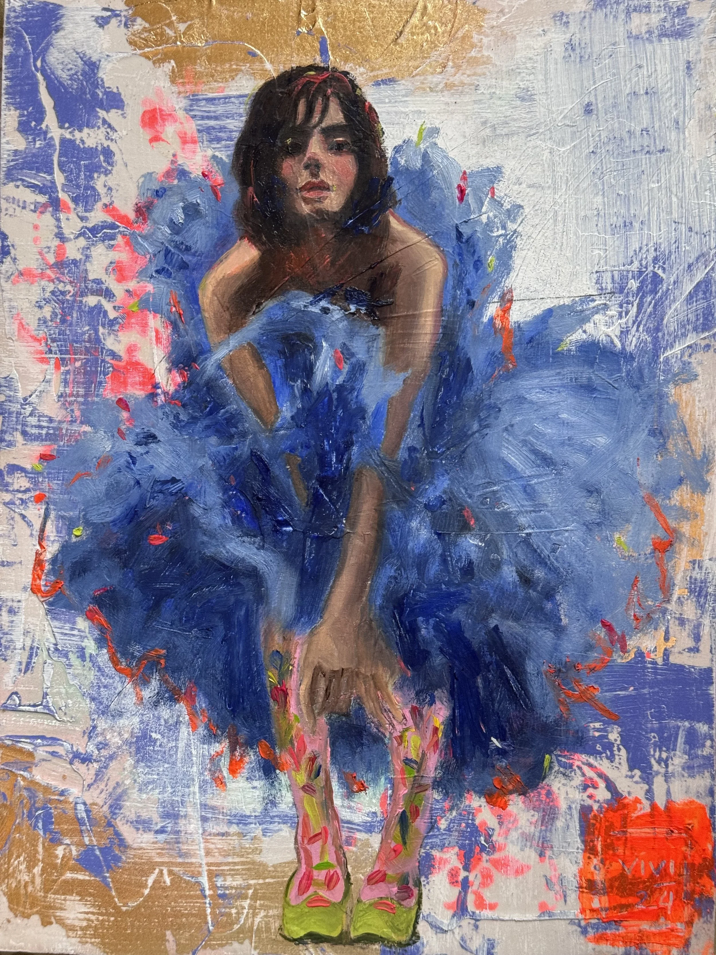 I work primarily with a combination of acrylic and oil paints, creating vibrant and textured pieces. I also incorporate other media such as charcoal, ink, pens, and collage elements to add depth and interest to my work.